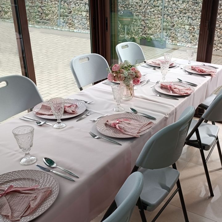 - Masa plianta se pliaza in jumatate si se transporta ca o valiza, ceea ce o face usor de transportat si este potrivita pentru picnicuri sau evenimente gastronomice in aer liber.
